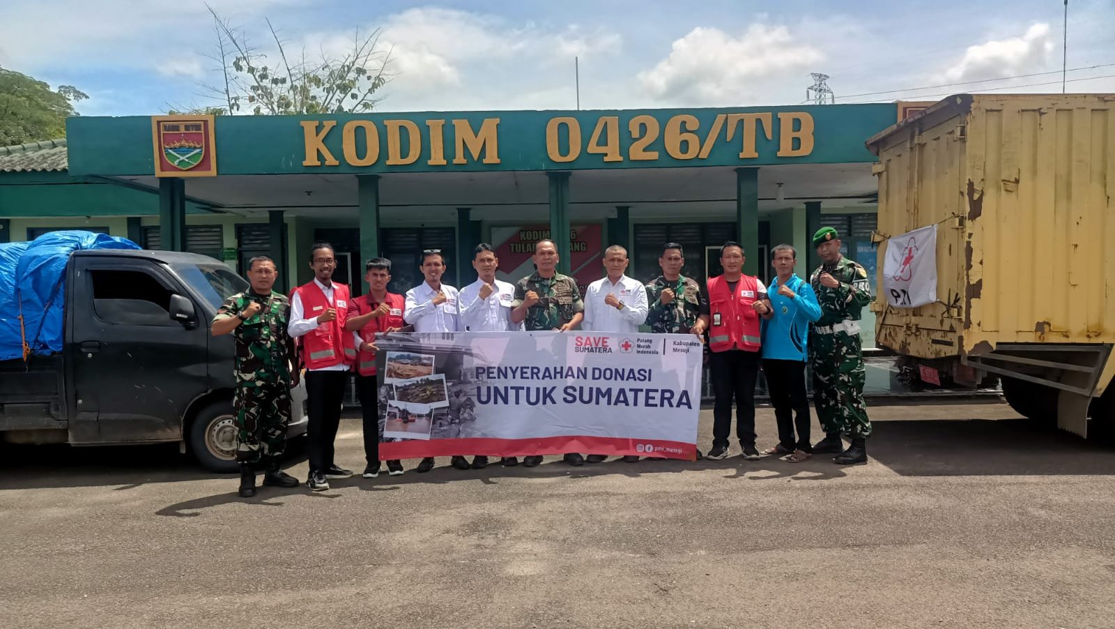 Harian Lampung Sumatera.co/Menggala Tulang Bawang Kodim 0426/Tulang Bawang menerima bantuan kemanusiaan untuk penanganan bencana alam dari Palang Merah Indonesia (PMI) Kabupaten Mesuji. Penyerahan bantuan berupa pakaian dan paket sembako tersebut dilaksanakan di Makodim 0426/Tulang Bawang, Jl. Lintas Timur Sumatera KM 113, Kampung Bujung Tenuk, Kecamatan Menggala, pada Jumat (12/12/2025).