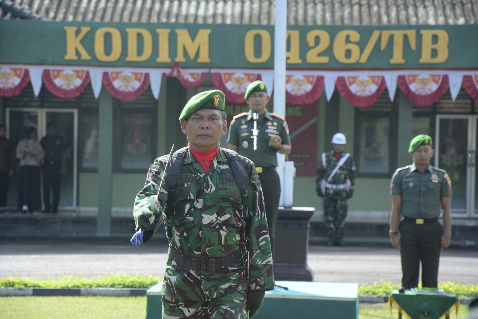 Upacara ini dihadiri oleh Para Danramil, Para Perwira Staf, seluruh anggota Bintara/Tamtama, Para ASN, dan Pegawai Harian Lepas (PHL) jajaran Kodim 0426/TB.